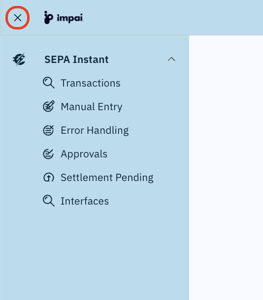 The collapsed navigation panel only shows the icons of the functional areas, so to select a specific screen you need to expand the panel again by clicking on the menu icon in the upper left corner of the screen.