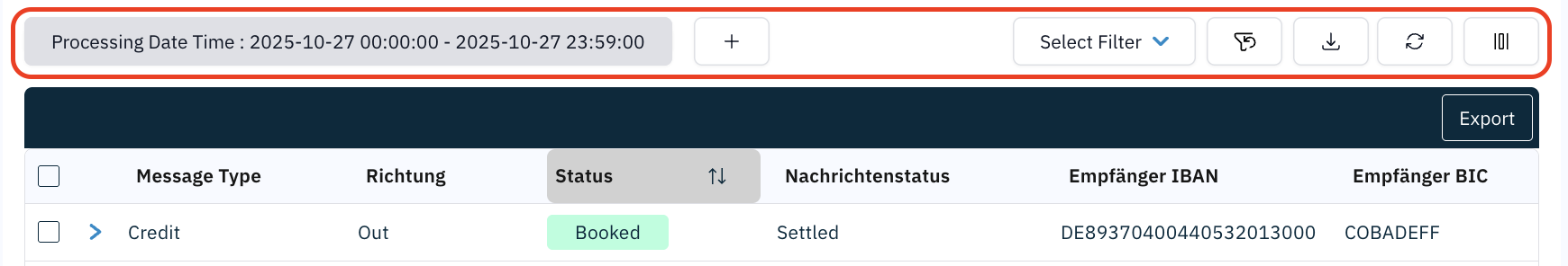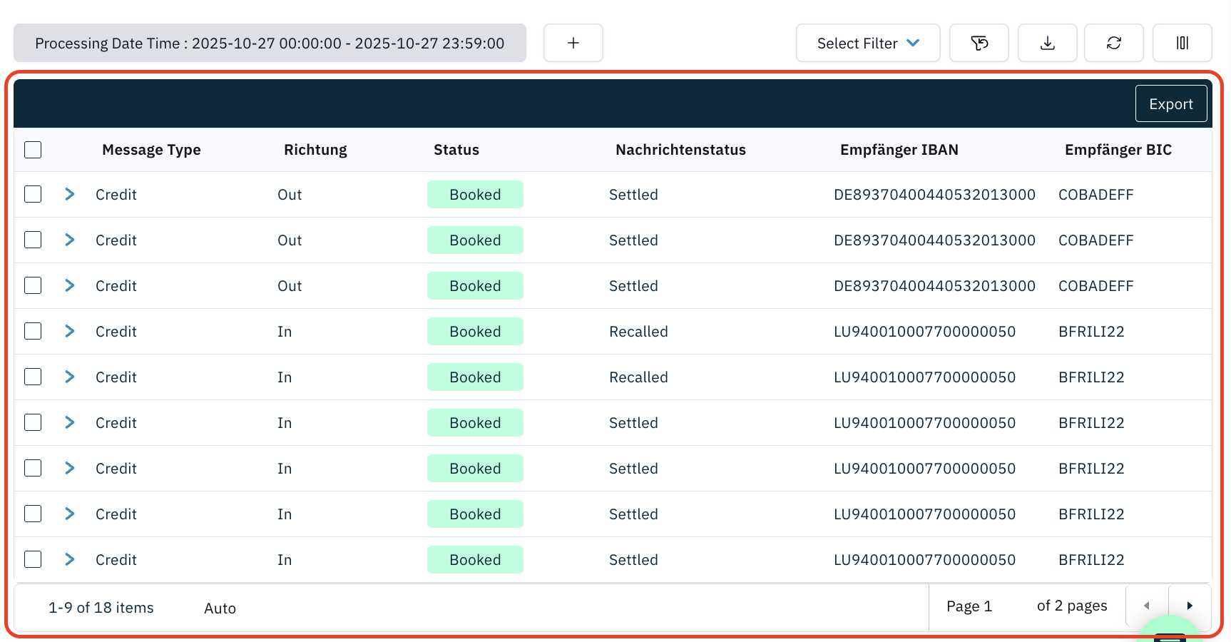 Transactions are automatically grouped under their Global Id. This is similar to how emails are threaded in an inbox: one Global Id represents a single payment flow, and all related messages (instruction, execution, confirmation, recalls, return, etc.) are nested under it.