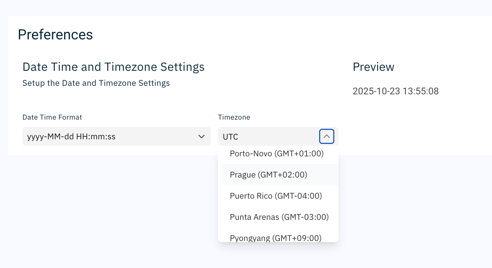 In the Preferences menu, you can configure how date and time information is displayed across ImPAI and which timezone to use for the time information. This helps align transaction records with your local working environment.