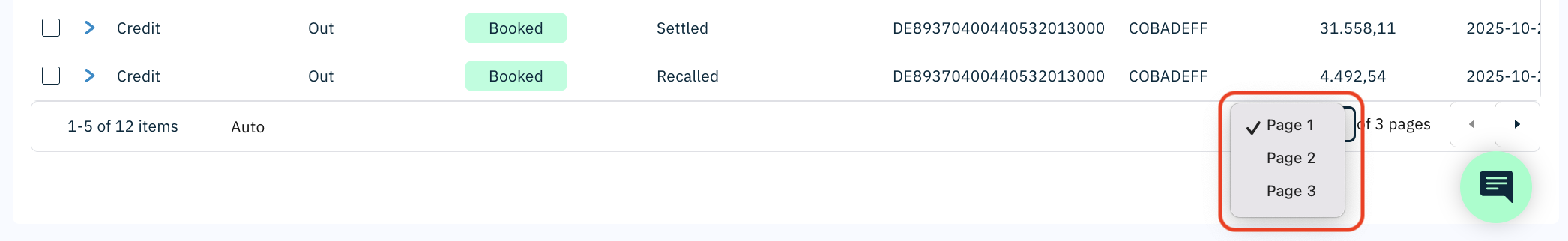 Auto,10,20,50, or100items per page. - Click the Page X button to open a page list and jump directly to a specific page.