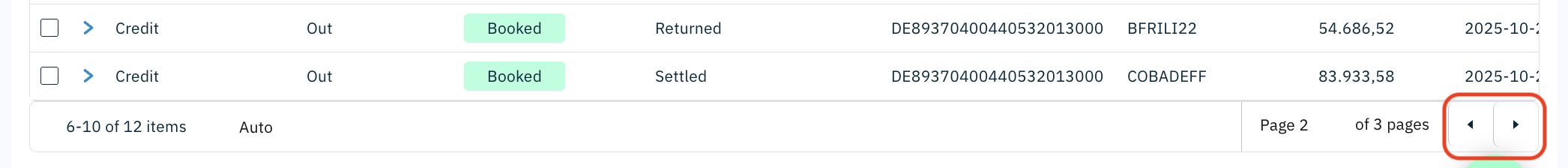 When the total number of records exceeds the selected page size, the results are split across multiple pages.
