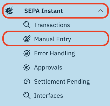 - Click on the SEPA Instant menu in the navigation panel on the left side.