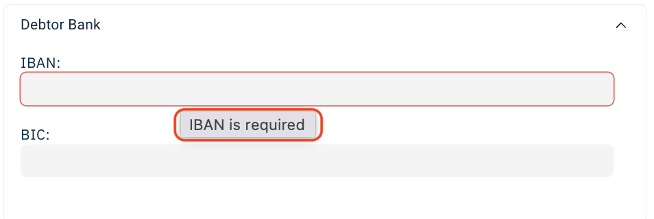 - The BIC field will be populated automatically if the IBAN is valid and the BIC is known.