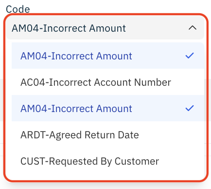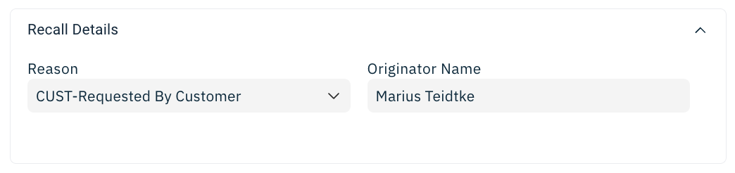 Before you can submit a Recall, you must first select a Reason Code from the dropdown list. Only valid reason codes for the current transaction will be shown.